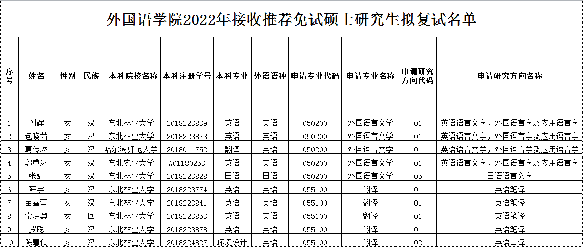 awc777万象城娱乐官网2022年接收推荐免试硕士研究生拟复试名单