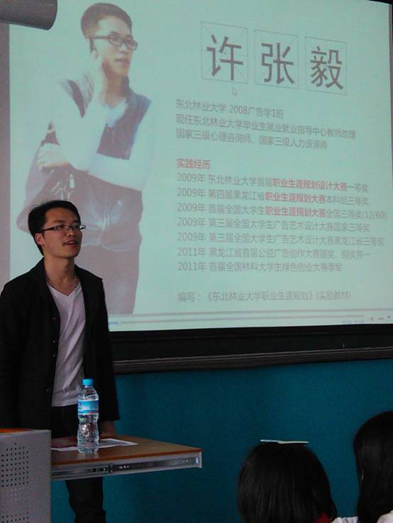 2012年5月16日,awc777万象城娱乐官网团委科技部在锦绣楼308室举办了职业生涯规划大赛培训讲座,主讲人是文法学院08级许张毅同学,玄凌老师作为年级辅导员出席,并带领09级共55名同学参加了培训讲座。