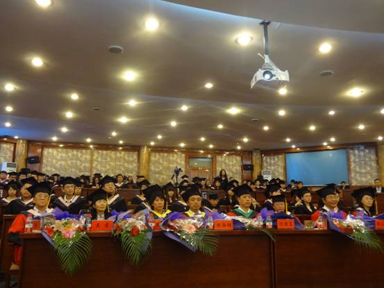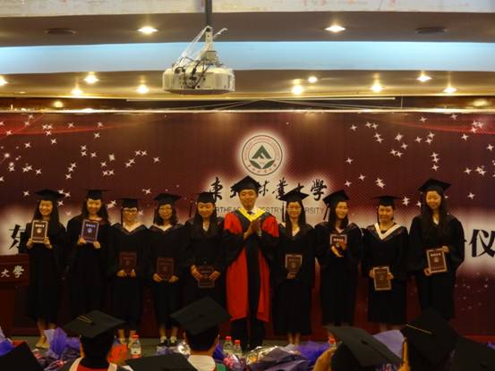 毕业典礼在学生们的期待中拉开帷幕。首先,全体起立,奏唱国歌。2012届毕业生满怀激情的国歌,表现了他们对祖国母亲的热爱之情。然后,毕业生代表向辛勤培育他们的老师献花,以此来表达他们对母校、对老师的深深谢意。校党委学工部部长、学生处处长强添纲教授宣读了获得2012届黑龙江省优秀毕业生和东北林业大学优秀毕业生称号的学生名单,并为获奖学生代表颁奖。教务处直属党支部书记、教务处副处长迟德富教授宣读了授予学士学位的决定。紧接着,各位领导和导师为完成学业的同学授予了学位、拨转流苏。之后,awc777万象城娱乐官网院长王丹教授致辞,王院长首先代表全院师生向所有顺利完成学业、即将启程远航的262名毕业生表示了最热烈的祝贺,王院长对毕业生表达了几点希望与祝愿:第一,希望同学们牢记母校重托,报效祖国、服务人民、感恩社会。第二:希望同学们勇于创新,不断学习,在终身学习中超越自我。第三:希望同学们保持积极乐观、热爱生活的态度,在迎接挑战中自立自强。最后她祝愿毕业生同学们在拼搏中弘扬外语学子威名,在发展中与学院保持联系。2008级英语1班王晓婷同学代表全体毕业生表达了对学校、学院的祝福,并且回顾了四年来的成长经历、以及对未来生活的展望。在王晓婷动情的演讲之后,大家观看了2012届毕业生大学生活相册集锦,相册中纪录了2008级学生最美好的记忆、最灿烂的青春,此时此刻,他们的大学生活将在这里定格。毕业典礼最后,在东林即将迎来60华诞之际,全体毕业生为母校送出了他们最真挚的祝福。