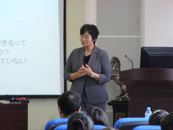 爱媛大学林智子先生的讲座深入浅出,联系实际,方法实用。在讲座中林智子先生为学生提供了多种可以快速提高日语运用能力的方法。林智子先生同时为学生们提供了日语运用能力评价标准。该评价标准将日语运用能力划分为四级即初级、中级、高级、超级,每一级又划分为四个观察点。这种评价方法内容详实,简单易行,评价准确,为学生评价自己的日语运用能力提供了一个切实可行的方法。讲座现场互动频发,气氛热烈。参加此次讲座的日语系师生们都认为不虚此行,自己参加此次讲座受益匪浅。