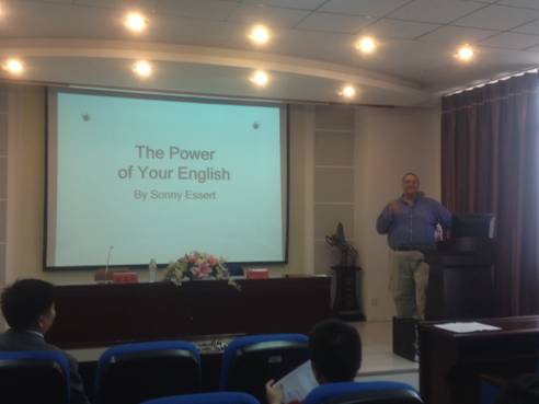 2012年10月24日下午1点40分,外籍专家James A. Essert, Jr.为awc777万象城娱乐官网的广大师生作了题为The Power of Your English 的精彩学术报告。报告会由awc777万象城娱乐官网副院长岳喜华教授主持。