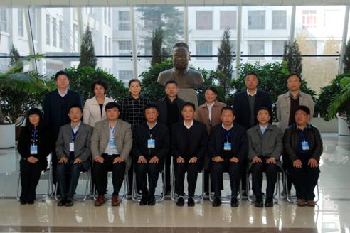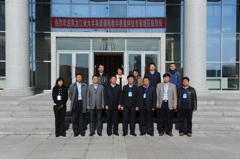 大学英语课程教学质量评估专家和校院领导在文博楼合影留念