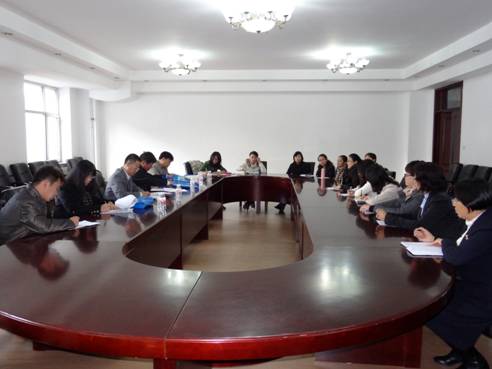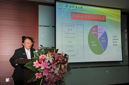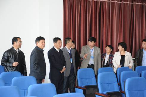 大学英语课程教学质量评估专家在学院多功能厅考察