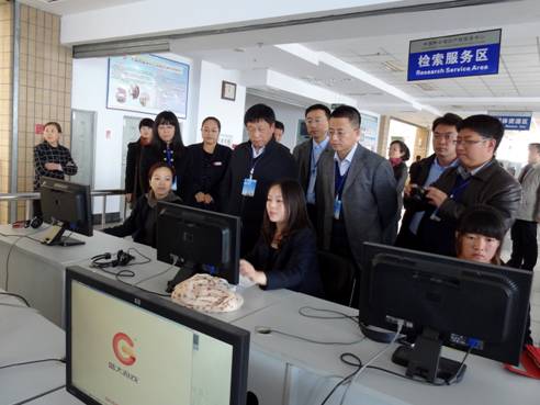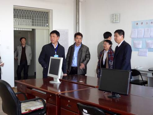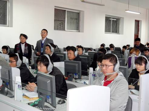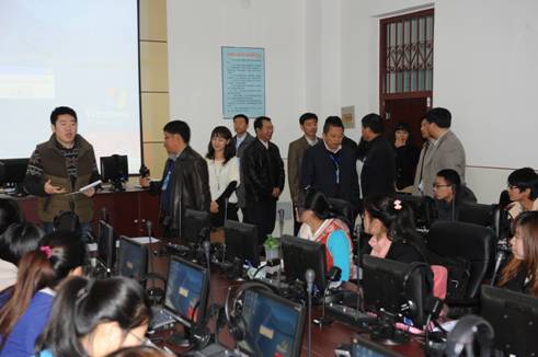 大学英语课程教学质量评估专家在学院多媒体室考察
