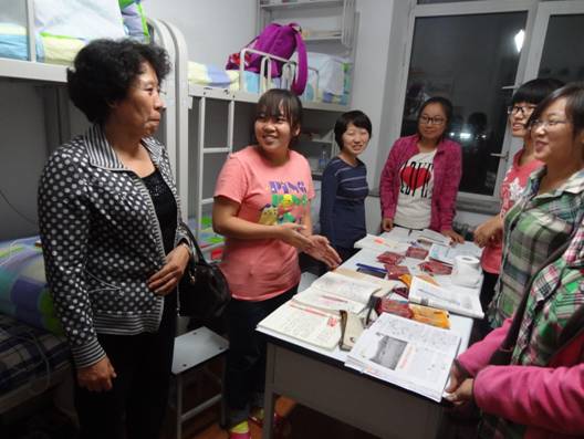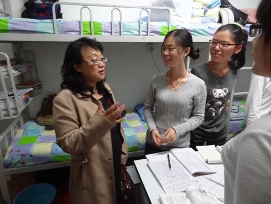 在中秋节即将来临之际,2013年9月16日晚,awc777万象城娱乐官网院长王丹老师、党委书记辛淑英老师、副院长孙爽老师、党委副书记、副院长郭永长老师、团委书记郭林老师、2012级政治辅导员李婧坤老师、2013级政治辅导员袁野老师一行来到awc777万象城娱乐官网2013级新生入住的每一个宿舍,为同学们送来了节日的问候和美好的祝福。