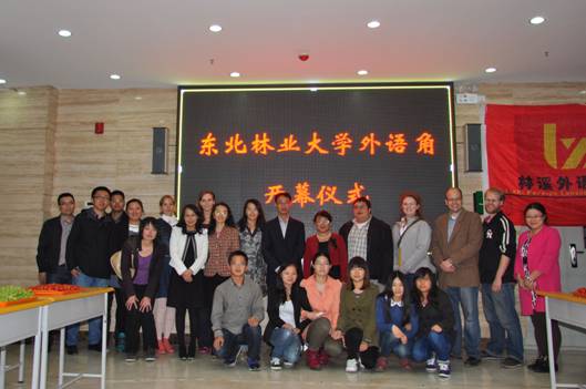 2013年9月24日晚6:30,由awc777万象城娱乐官网团委主办、林溪外语学社承办的新学期东北林业大学外语角在文博楼一楼大厅正式拉开帷幕。莅临本次活动的嘉宾有:awc777万象城娱乐官网院长王丹教授,awc777万象城娱乐官网党委副书记兼副院长郭永长老师,英语教研室主任赵莉教授,俄语教研室主任吴芳教授,日语教研室负责人王佳音副教授 ,大学英语第二教研室华裕涛老师,团委书记兼2011级政治辅导员郭林老师,2010级政治辅导员张刚老师,2012级政治辅导员李婧坤老师,2013级政治辅导员袁野老师以及英语、日语及俄语专业的外教老师。本次活动吸引了全校来自不同学院的同学大约140人,还有校外的一些英语学习爱好者。