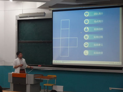 首先,学院团委社会实践部部长杨树云对本次报告会作了简要的介绍,之后3个实践分队分别作了报告。第一组作报告的是以杜云峰为代表的“星火燎原”实践分队。他们秉承“感恩、立志、成才”的理念,用饱满的热情完成了体验边境城、直面新海关、寻访俄罗斯等既定模块,用自己的亲身经历证明了团队精神对于当代大学生的重要意义。第二组作报告的是以隋子轩为代表的“我的中国梦”就业调研实践分队。该队直面当前大学生最为关心的就业问题,通过调查问卷和现场采访相结合的方式,得出了自己的观点和结论,让在座的各位同学受益匪浅。最后一组作报告的是以马婷婷为代表的“我的中国梦文化宣传‘拒绝剩宴,倡导光盘’”实践分队。他们秉承“真诚、团结、热情”的团队精神,通过网络问卷以及现场路演等形式宣传了“光盘行动”的意义,体现出了当代大学生应有的社会责任和担当精神。