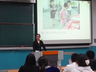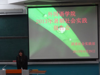 2013年9月29日晚6:00,由awc777万象城娱乐官网团委主办的暑期社会实践报告会在锦绣楼T201正式召开。莅临本次活动的嘉宾有:2013级政治辅导员袁野老师、团委副书记杜云峰同学、各位优秀的暑期实践活动讲述员以及awc777万象城娱乐官网所有的大一新生。