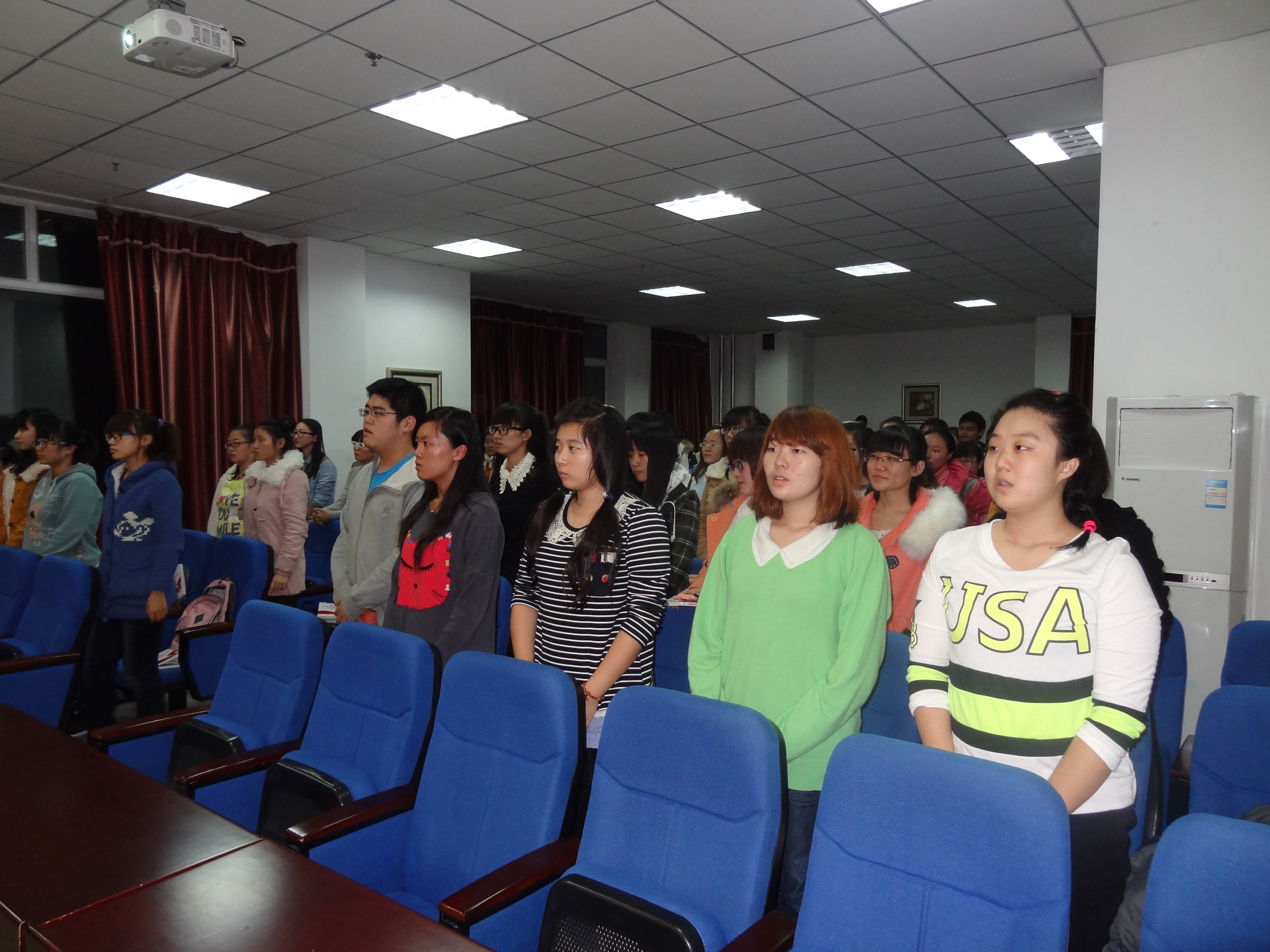 2013年11月6日18时,awc777万象城娱乐官网在文博楼1019学术报告厅召开了第七期入党积极分子培训班开班仪式。与会人员包括awc777万象城娱乐官网党委副书记兼副院长郭永长老师,awc777万象城娱乐官网团委书记、2011级政治辅导员郭林老师,学生会秘书长、2010级政治辅导员张刚老师,2012级政治辅导员李婧坤老师以及2013级政治辅导员袁野老师。张刚老师担任本期党校培训班的班主任,并主持了此次开班仪式。来自awc777万象城娱乐官网各年级的106名学员参加了本期党校培训班学习。
