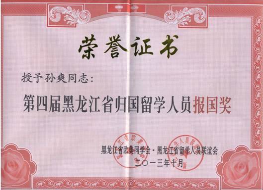 为进一步弘扬留学报国的优良传统,激励留学人员在黑龙江省“科教兴省”、“人才强省”的伟大事业中不断建功立业,表彰广大会员心系家乡、报效祖国的拳拳爱国之心和先进事迹,特为在留学报国、建设龙江中做出突出贡献的留学人员颁发了“第四届黑龙江省归国留学人员报国奖”,万象城官网孙爽副院长获此殊荣,并作为代表上台领奖。(李志坤)