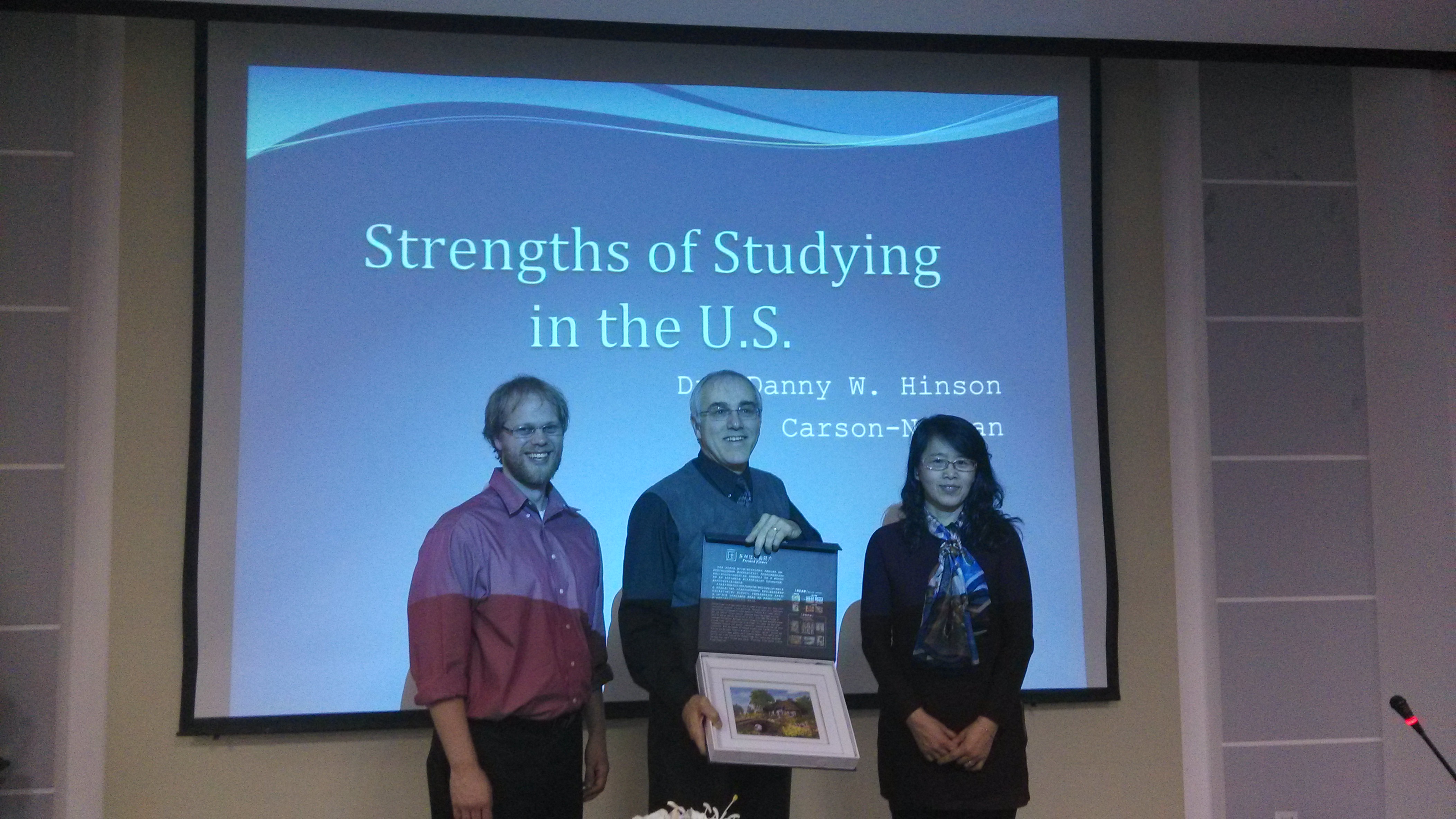 2月28日18时,awc777万象城娱乐官网在文博楼1019室举办以“Strategies For Independent Learning”为主题的英语讲座,主讲人是来自美国卡森纽曼学院的Danny Hinson教授。卡森纽曼学院位于美国田纳西州,1997年学院被美国《货币》杂志评为百所优质大学之一。1993年成为入选国家教育学习计划的17所大学之一,拥有160年的历史。Danny教授的学生,awc777万象城娱乐官网外籍教师Micah老师担任了此次讲座的主持人,