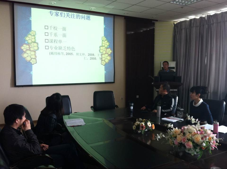 汇报会上,首先由佟光耀老师简要介绍了此论坛的基本情况,然后由蒙博涵老师用幻灯的形式展示了此论坛的主要精神,主要涉及《英语专业本科教学质量国家标准》的主导思想,以及大连外国语大学和安徽大学英语系课程改革的经验介绍,尤其是以内容为依托的课程体系建设。两位教师在与会时着重关注了英语专业的课程体系建设问题,在汇报会上传达了论坛的主要指导思想,即改变以技能为导向的英语教学理念,要回归传统,强调人文素养,把英语专业学生培养成有较强思辨能力,有开阔的国际视野和较好的文学素养的优秀人才。