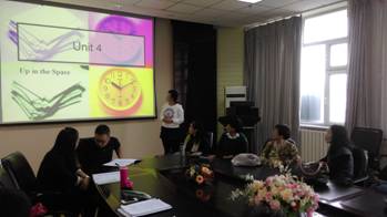 活动中,首先由熊辉老师以说课的形式演示《英语听力3》的授课进程及相关理念。熊辉老师的说课内容丰富、细节到位,包括教材选择、教学进度安排、课内外内容比例,课外练习内容及形式、教学方法运用,理论支撑与期中反馈结果等各方面。授课选取“Up in the Space”单元内容,进行课前学生的10分钟新闻报道,5分钟的模拟新闻播报,课内听力教学,课外练习指导及作业布置与反馈等一系列教学活动。整个教学组织安排紧凑、师生互动密切、学生得到极大的锻炼与挑战。其中以录像展示的学生模拟新闻播报,形式新颖,得到与会教师的认可。同时在与专业四级测试新题型相关的听力练习中,熊辉老师强调了听力技巧的指导与语篇理论在教学中的应用,达到理论渗透与技能培养的有机结合。