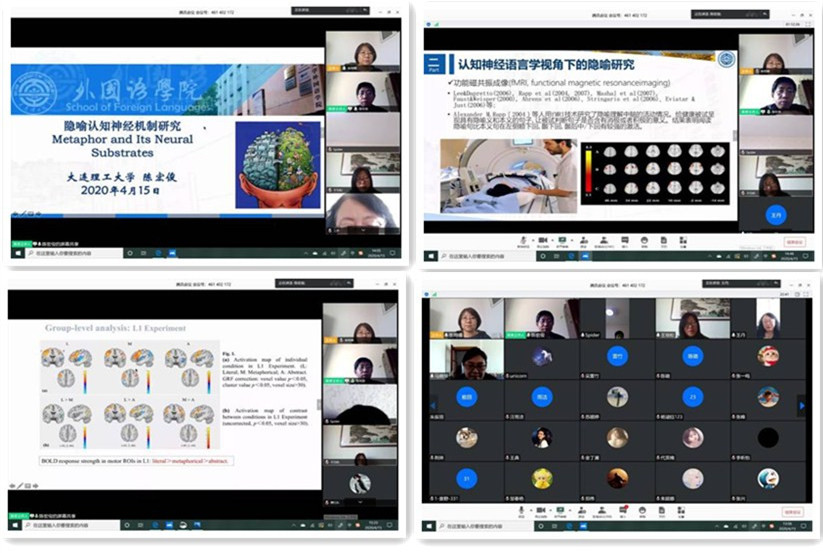 2020年4月15日下午,由awc777万象城娱乐官网主办的“隐喻认知机制研究”线上学术讲座圆满举行。本次学术讲座采用“腾讯会议”软件网上进行,由awc777万象城娱乐官网副院长张鸣瑾主持,大连理工大学陈宏俊教授主讲,awc777万象城娱乐官网教师及全体在读研究生、本科生近140人参加并积极开展了学术讨论。