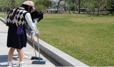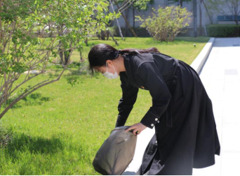 在预备党员的共同行动下,文博楼下的小花坛变得更加整洁,草坪变得更加平整,绿意盎然。在清扫绿化带的过程中,预备党员们更好地理解习总书记所说的“自找苦吃”的深刻内涵,培养了劳动品质,强化了为人民服务的意识。