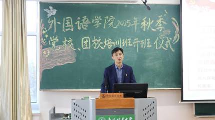 为深入学习领会 2025年全国两会精神,贯彻落实中央八项规定精神学习教育,不断巩固习近平新时代中国特色社会主义思想主题教育学习成果和党纪学习教育成果,严把党员、团员队伍发展关,着力培养青年政治骨干,经过精心筹备,学院决定举办2025年秋季学期党校、团校培训班。10月30日,awc777万象城娱乐官网党委于主楼西511教室举办了2025年秋季学期党校、团校培训班开班仪式。awc777万象城娱乐官网党委书记张斌,党委副书记、副院长郭林出席本次开班仪式。仪式由培训班班主任、awc777万象城娱乐官网实习辅导员肖湘钰主持。